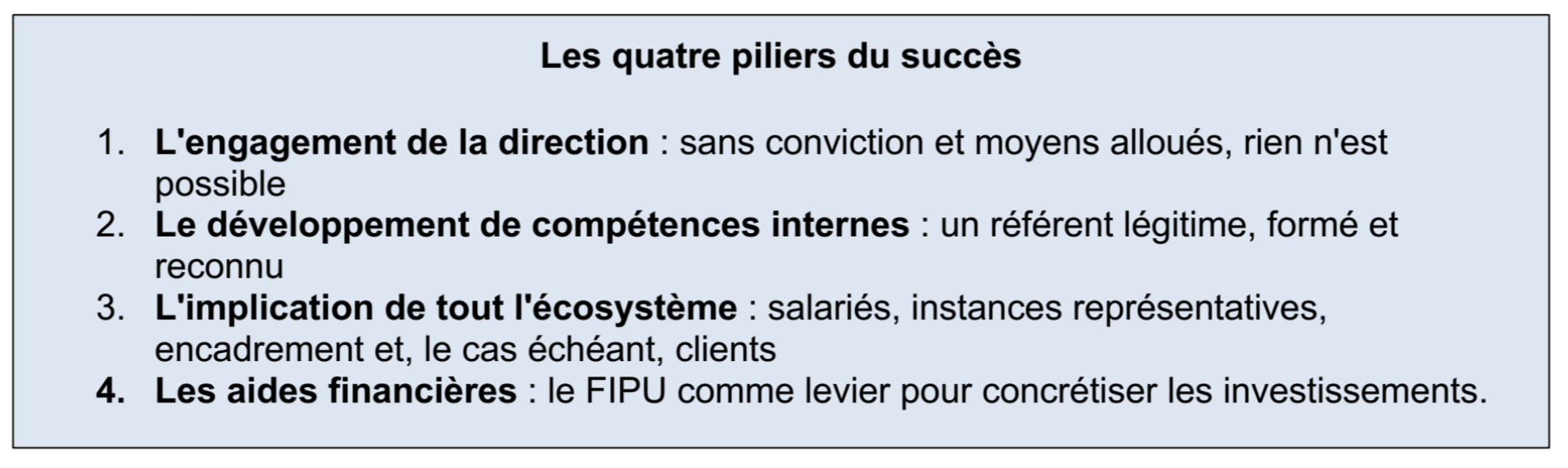 L’expérience de la Société MultiServices démontre qu’une démarche de prévention des TMS structurée et collective fonctionne. Au-delà des spécificités du secteur de la propreté, plusieurs enseignements sont transposables à toutes les entreprises exposées aux risques TMS.
