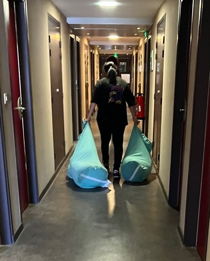 • Chariots ergonomiques dans tous les bâtiments d’hébergement pour éliminer les ports de charges répétés
